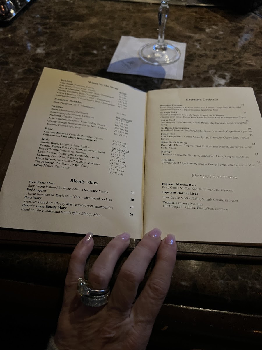 The ambiance at St. Regis is enchanting. Guests rave about its soothing atmosphere, beautifully designed decor, and attentive service. The unique tradition of sabering champagne at four o'clock adds an element of grandeur to your experience, making it perfect for memorable gatherings. With enticing bites, like sliders and truffle popcorn, complementing the drink selection, St. Regis Bar is the epitome of sophistication and is a must-visit for anyone seeking a taste of timeless elegance.